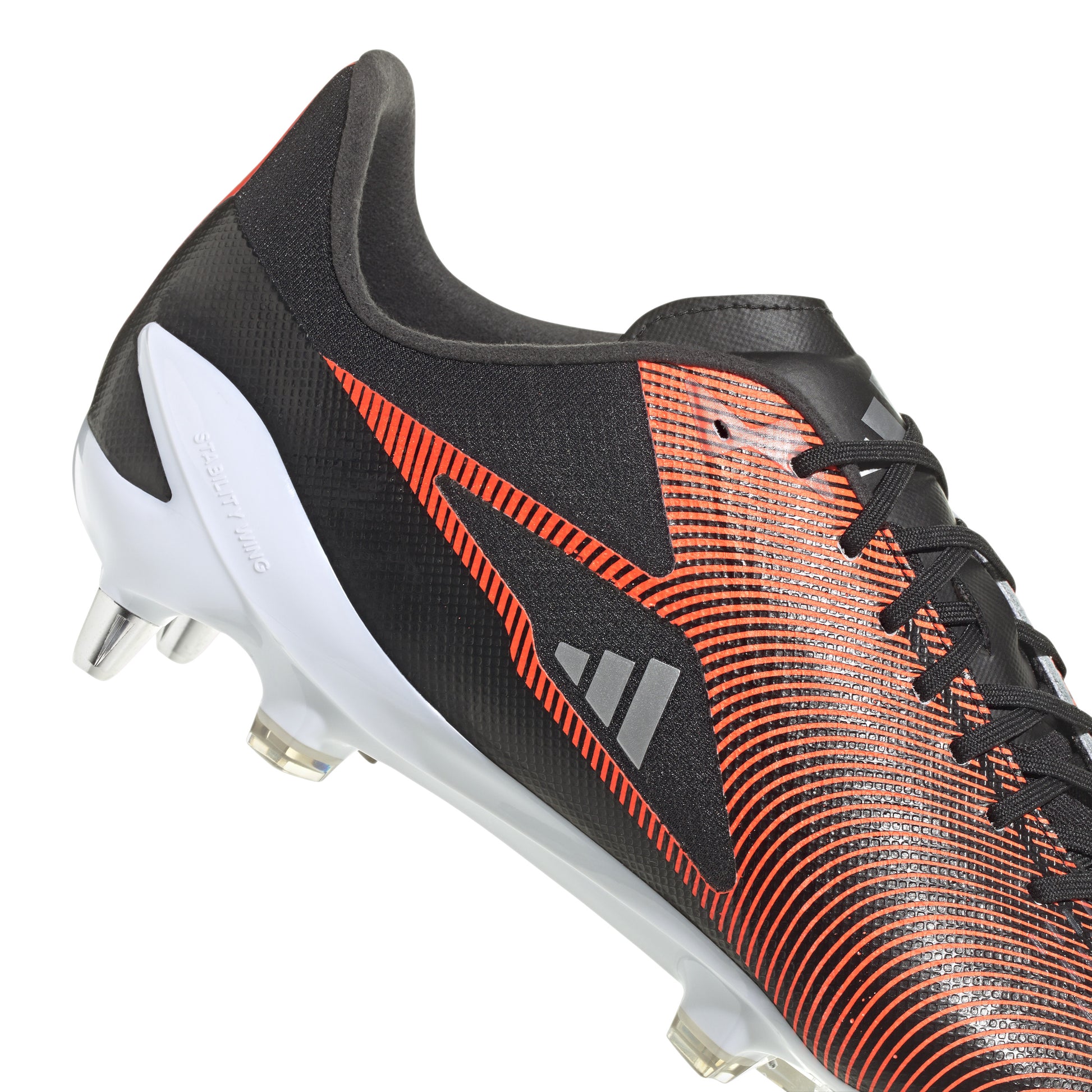 Rapid in every direction. As the game gets faster, players need to respond in a heartbeat. Built for soft ground, these adidas RS15 Pro rugby boots have a seamless Fusionskin leather forefoot for a first-class feel and custom fit. Rigid stability wings, ripstop fabric in the rearfoot and foam Sensepods in the heel ensure you stay strapped in for sprints. On top, asymmetrical lacing and 3D-printed elements help produce accurate kicks. Underneath, a Speedframe outsole adds biting traction.
