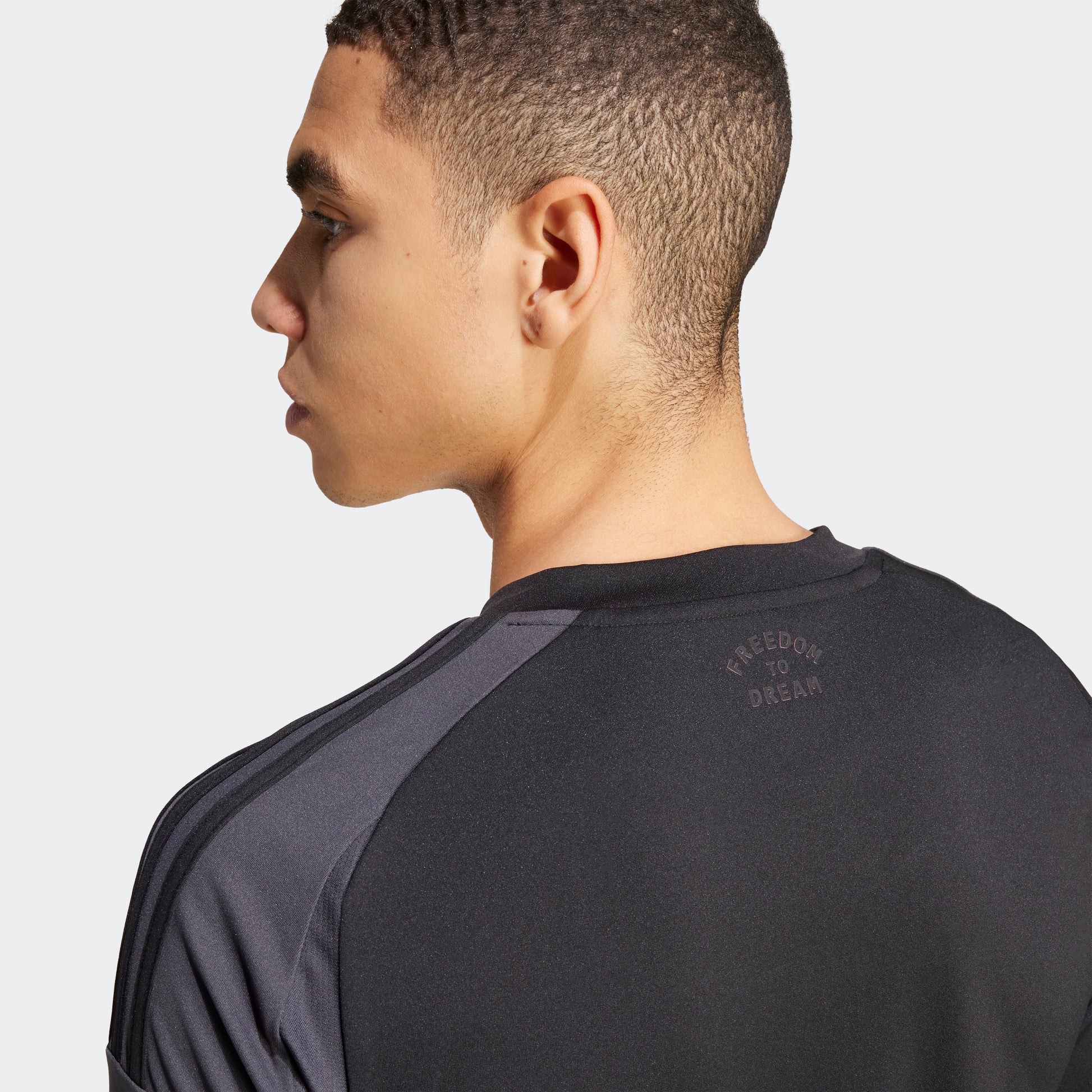 Bring Miami style to the stadium in this elegant Inter Miami CF away jersey from adidas. With pink details popping against a black and carbon half-and-half design, this supporter shirt exudes sophistication. Its moisture-managing AEROREADY and soft fabric are there to keep fans comfortable. A club sign-off and sewn-on crest show you appreciate first-class football.
