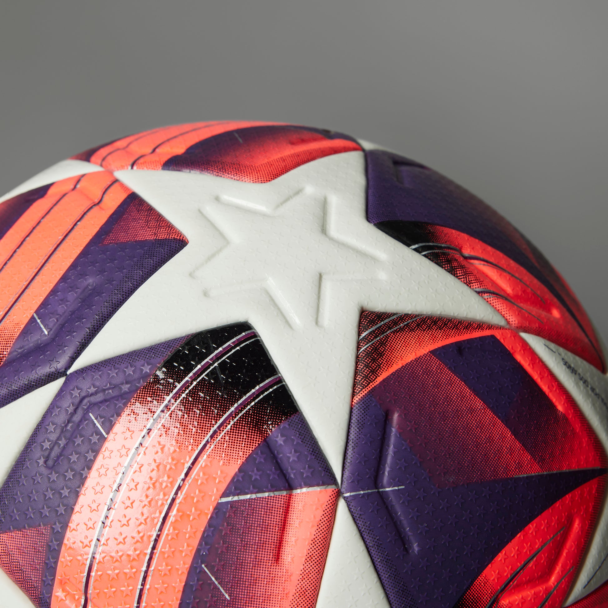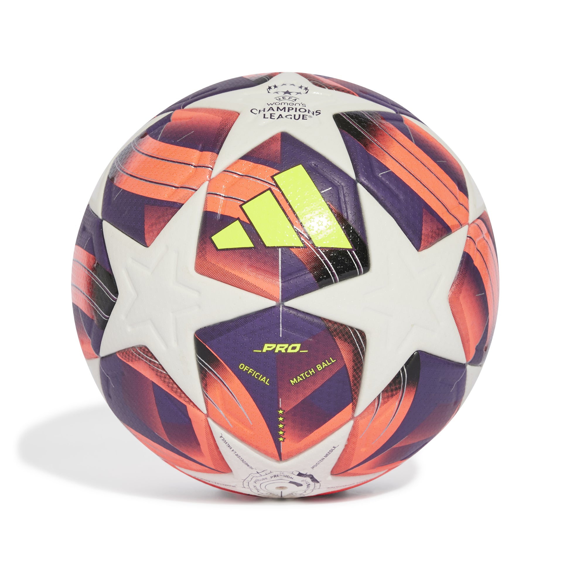 Reflecting the strength and dynamism of the competition's teams, the UWCL trophy's spiralling arms ensure it's instantly recognisable. Showing off a bold design inspired by those glittering features, this adidas Pro football is the one used in the group stages of the 24/25 tournament. Its seamless construction and embossed details will help you play like a champion.