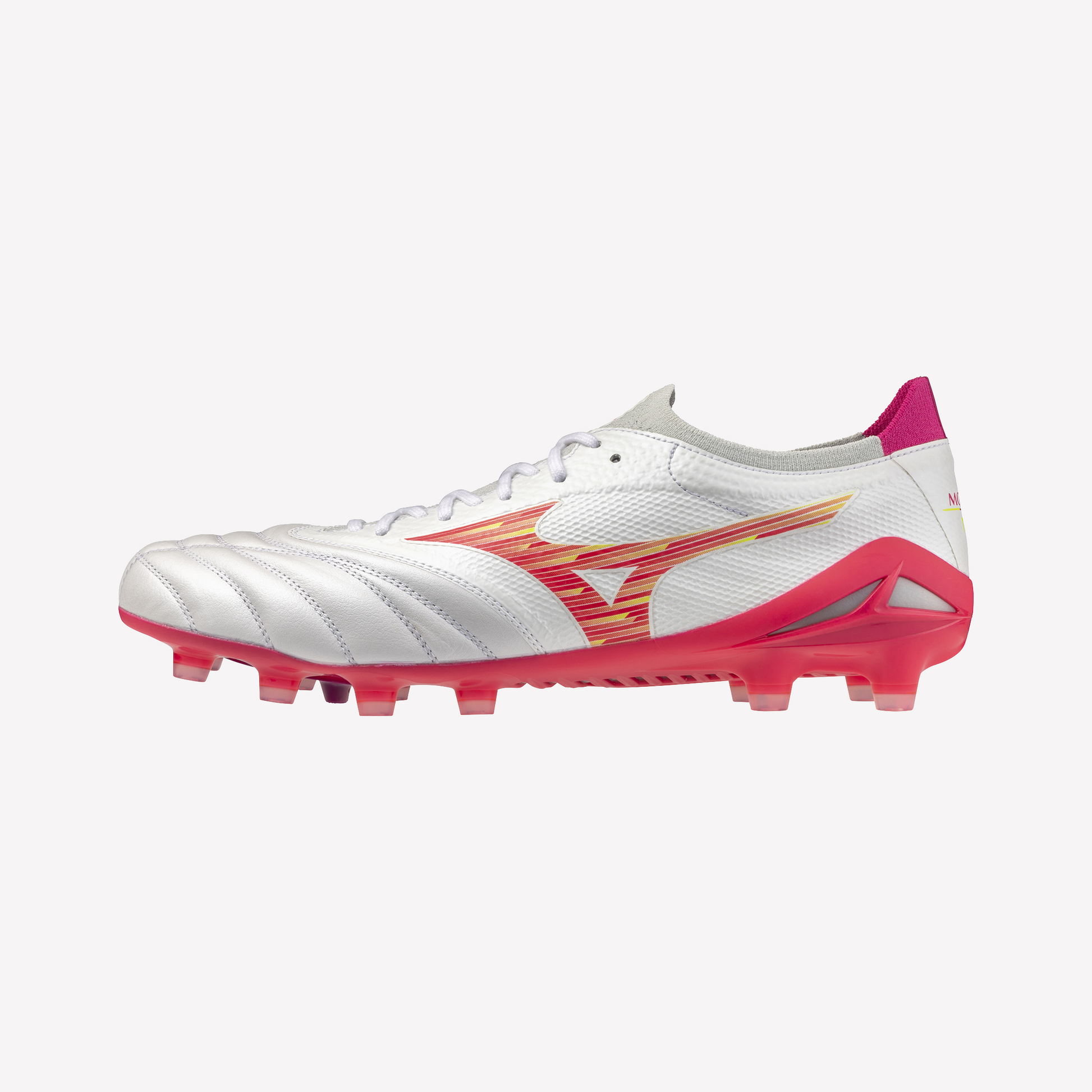 Buy the Mizuno Morelia Neo IV Beta Elite FG - White/Pink Tetra/Fuchsia Purple at Soccer World.